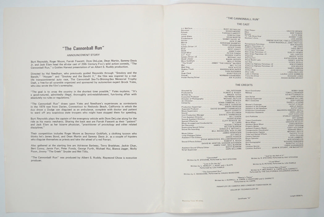 “The Cannonball Run” Original Cinema Exhibitors Press Synopsis / Credits Booklet (UK)