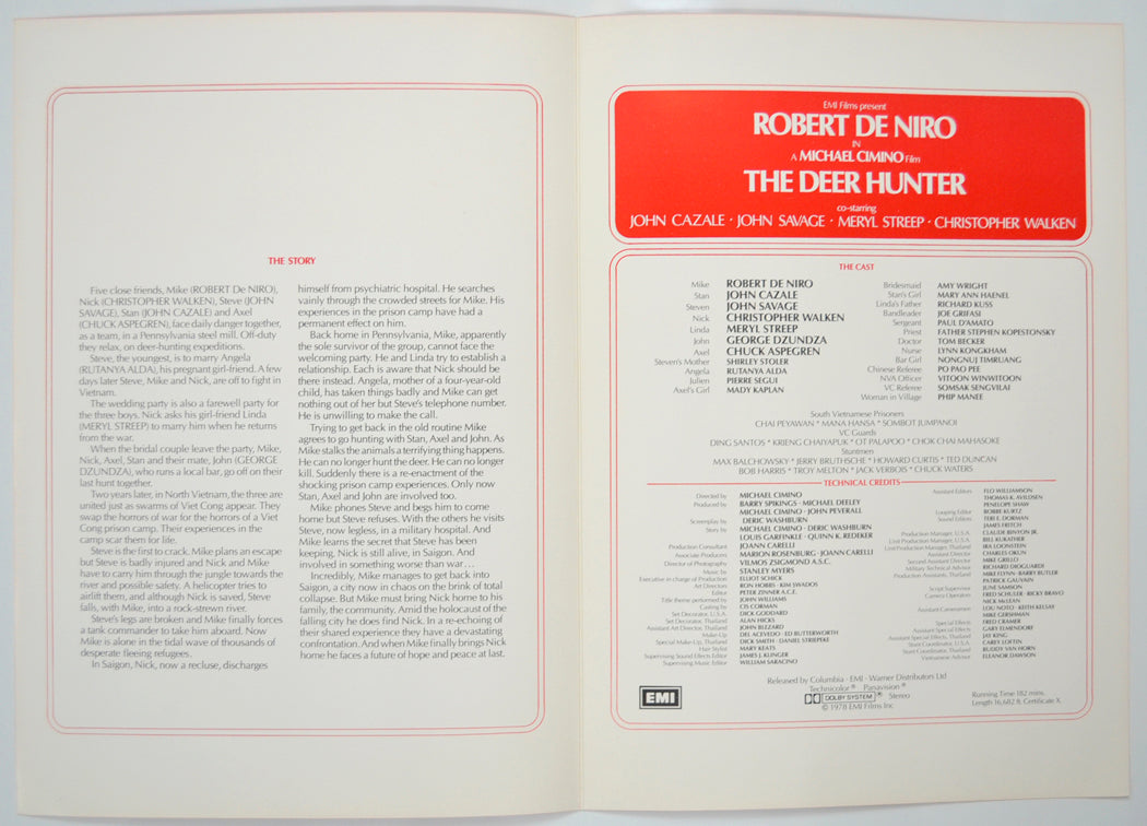 “The Deer Hunter” Original Cinema Exhibitors Press Synopsis / Credits Booklet (UK)
