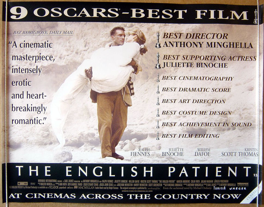 Ralph Fiennes, Juliette Binoche, Willem Dafoe, Kristin Scott Thomas, Naveen Andrews, Colin Firth, Julian Wadham, Jurgen Prochnow, Kevin Whately, Clive Merrison, Nino Castelnuovo, Hichem Roston.