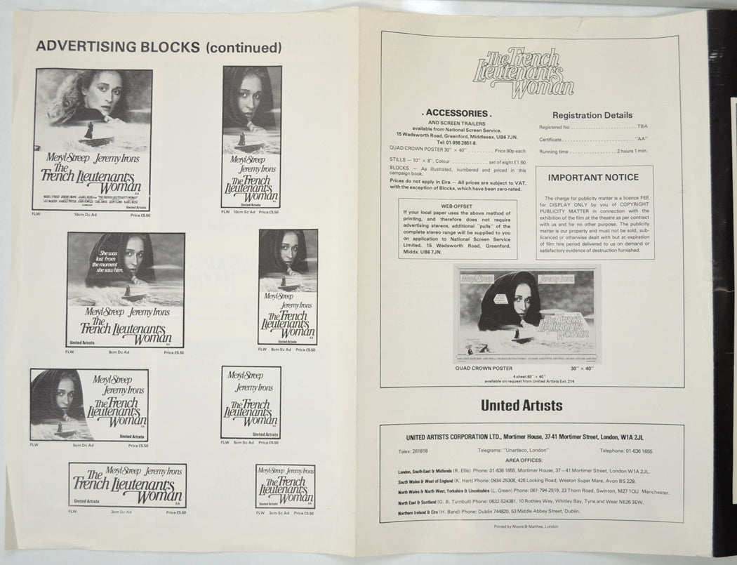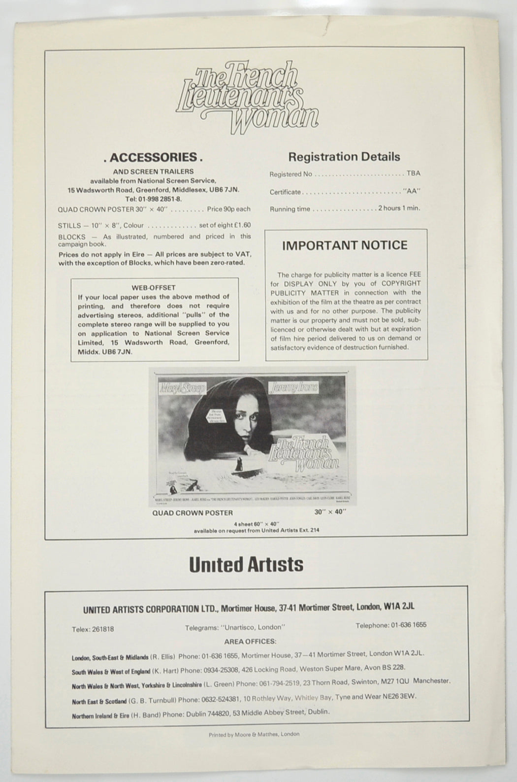 “The French Lieutenant’s Woman” Original 6 Page Cinema Exhibitors Campaign Pressbook (UK)