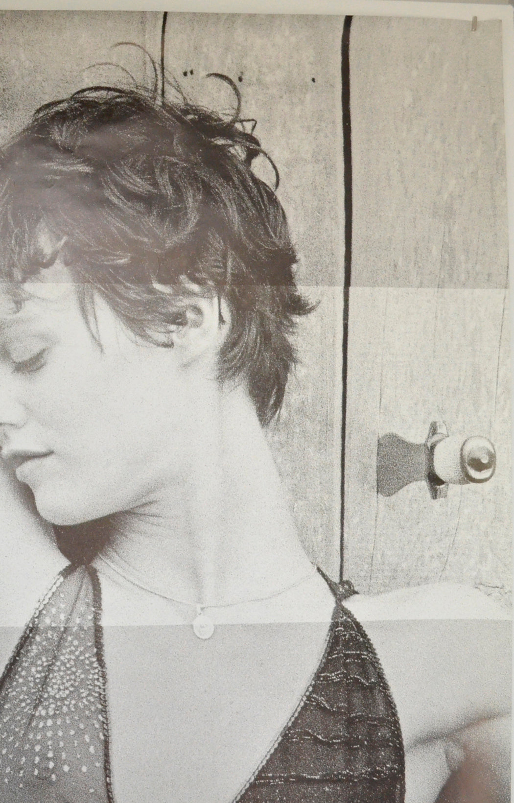 Very mild creasing to the top corners, mild creasing around the bottom of the right edge, extremely tiny tear near the bottom of the left edge, 4 x 6 inch (10 x 15 cm) sticker on the back of the top center of the poster (only noticeable on the front if the poster is held up to the light / backlit), a couple of tiny popcorn stains and a couple of tiny Brown liquid stains on the back of the poster (only noticeable on the front if the poster is held up to the light / backlit), faint small light Brown liquid stain also on the back of the poster near the top edge which is very lightly visible on the front (on the girl’s arm just above her elbow), otherwise excellent!