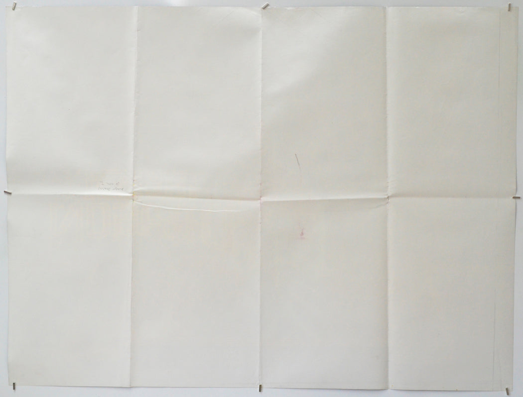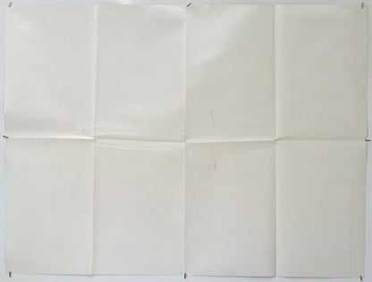 Extremely faint 3 cm diagonal crease across the top left corner, two very faint 7 cm diagonal creases either side of the top center along with a little additional creasing, tiny spot of edge wear at the top of the right edge, extremely mild creasing at the top of the left edge, two extremely faint indentation lines from the top edge (near left corner) down towards the left fold intersection, 6 cm crease line just right of the actress’s chin going down into the actors shoulder (some green print has transferred onto the crease), extremely mild fold wear (light stress marks on some the fold lines and creasing around and between some of the fold intersections), otherwise excellent! Probably never displayed!Double Sided :