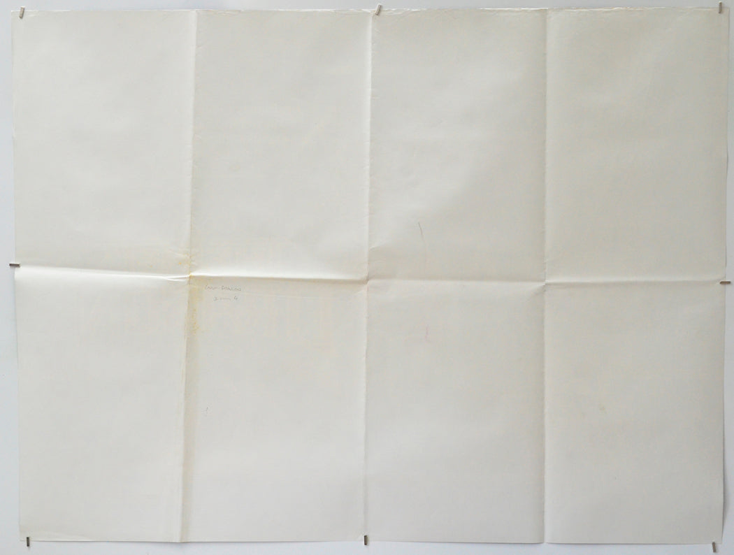 2 cm diagonal crease across the top left corner with additional creasing to the tip of the corner, approximately 5 tiny tears and mild creasing on the top edge, extremely mild creasing on the bottom edge, two very light diagonal indentation lines from the top edge (near left corner) down towards the left fold intersection, light 4 cm crease just right of the last letter of the title, 7 cm diagonal crease just right of the actress’s chin going down into the actors shoulder (some green print has transferred onto this crease), very mild fold wear (light stress marks on some the fold lines and creasing around and between some of the fold intersections), a few Brown spots of damp (foxing) on the back of the right fold intersection area (not noticeable on the front), otherwise very good!Double Sided :