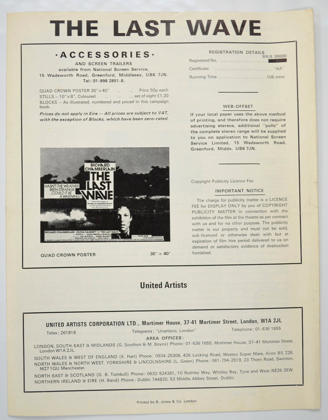 “The Last Wave” Original 6 Page Cinema Exhibitors Campaign Pressbook (UK)