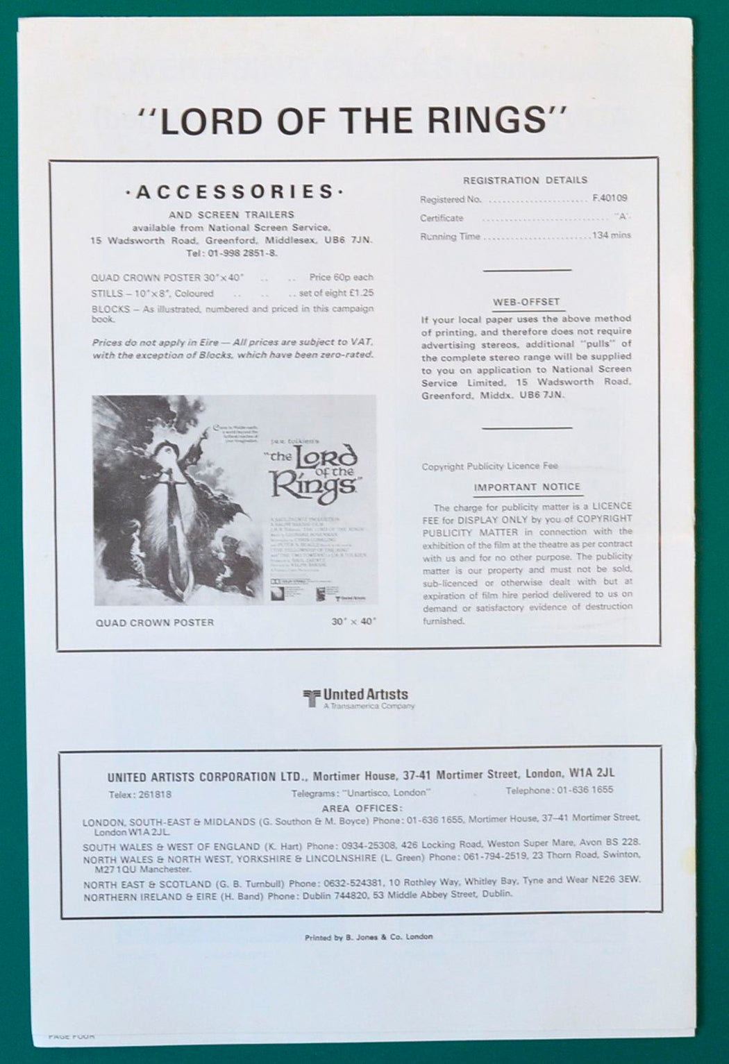 “The Lord Of The Rings” Original 12 Page Cinema Exhibitors Campaign Press Book