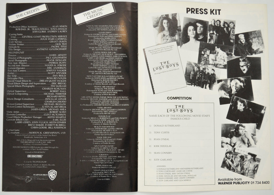 “The Lost Boys” Original 8 Page Cinema Exhibitors Campaign Pressbook (UK)