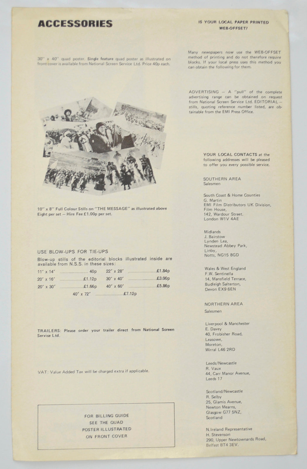 “The Message” Original 4 Page Cinema Exhibitors Campaign Pressbook (UK)