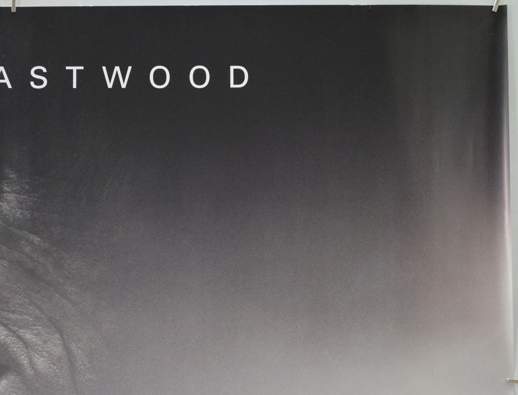Small crease near the bottom of the right edge, a few tiny white surface creases near the bottom edge including a 2 cm vertical white crease through the bottom right credit in the credits block and a similar crease at the same level near the right edge, very light 15 cm vertical crease from Eastwood’s cap down into the bridge of his nose (has a couple white stress marks within the nose area), otherwise very good.