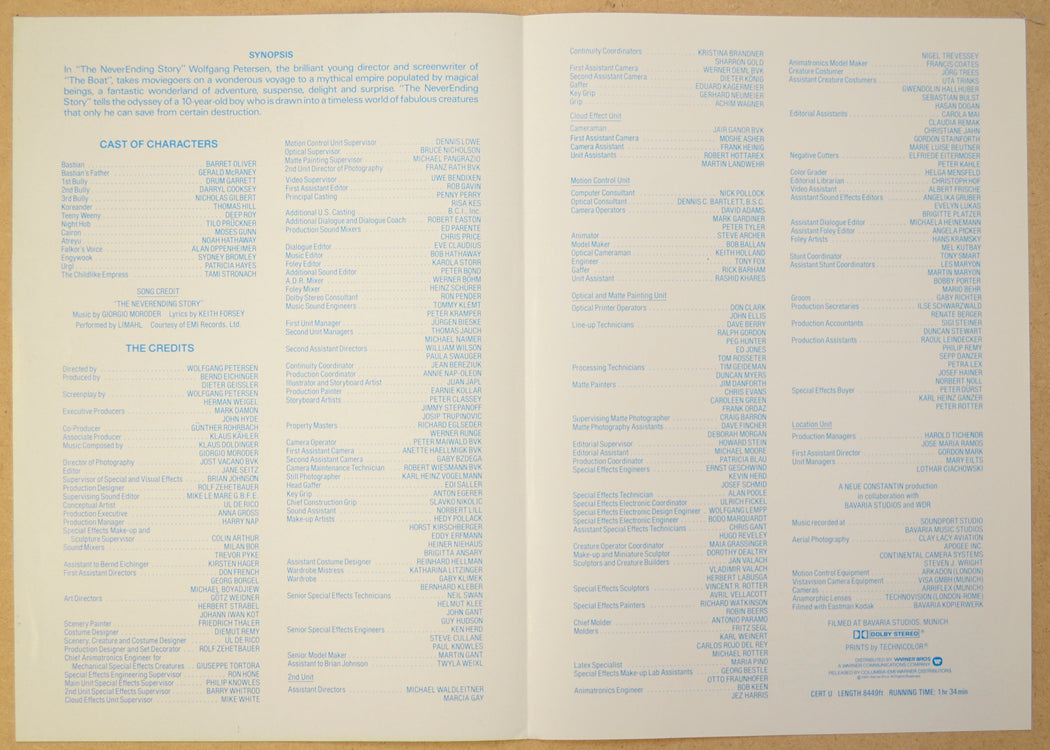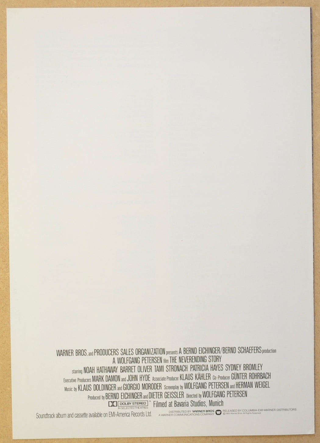 “The Never Ending Story” Original Cinema Exhibitors Synopsis / Credits Booklet (UK)