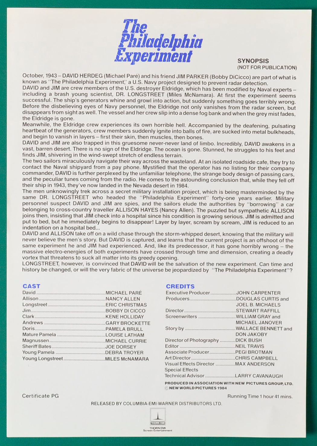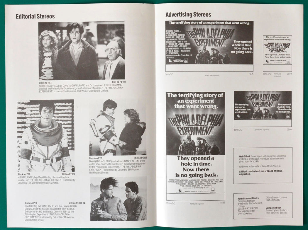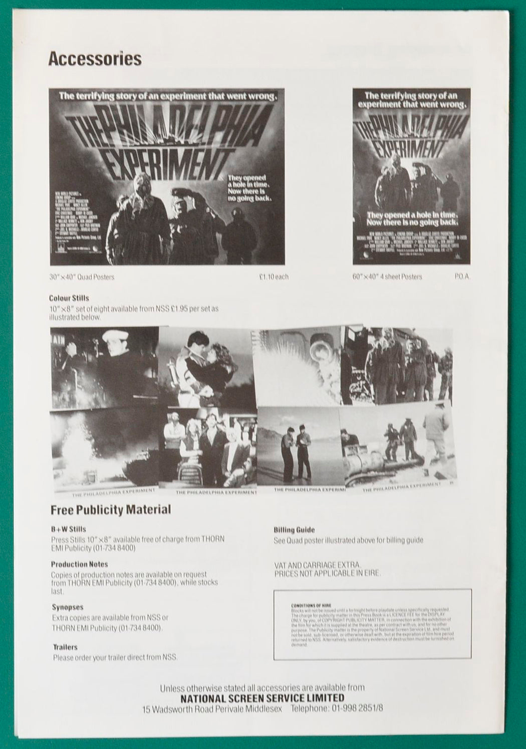 “The Philadelphia Experiment” Original 4 Page Cinema Exhibitors Campaign Press Book + Synopsis / Credits Sheet