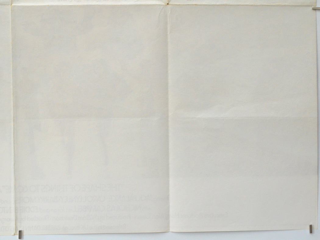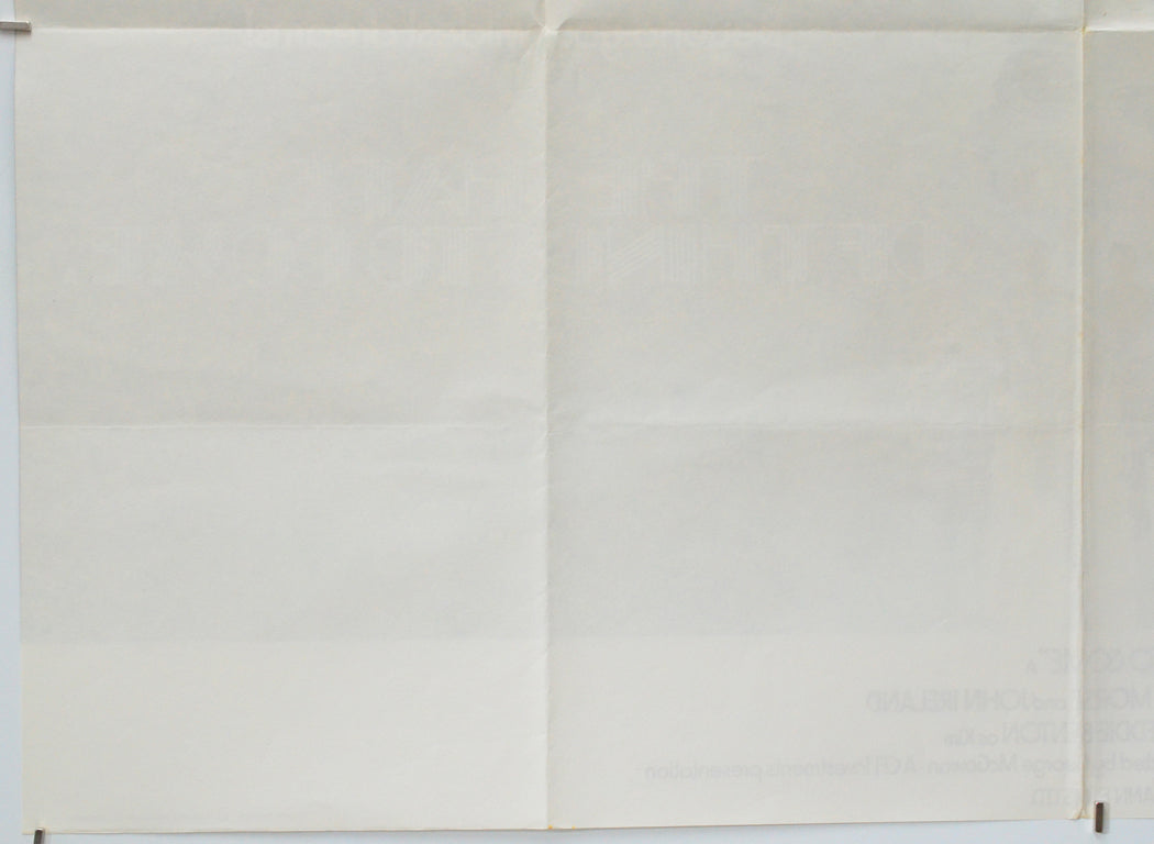 Extremely tiny tear at the top of the left vertical fold line, extremely mild edge wear on the top edge (around the top of the right vertical fold line), a few tiny dark print specks in the right of the bottom white border, extremely mild fold wear including an extremely tiny wear hole at the center fold intersection on the left vertical fold and light creasing around some of the intersections (note there are three horizontal and three vertical folds), the title has been written on the back in blue Biro and the back of the top half of the left vertical fold line and the left of the center horizontal fold line have browned/have Brown specks of damp on them (foxing) only noticeable on the front if the poster is held up to the light / backlit, otherwise very good!Double Sided :