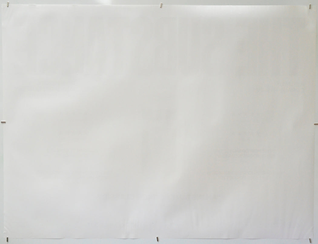 The bottom 5 inches (12 cm) appears to have become slightly damp at some point as the surface is a little wavy particular below the September text and the bottom right corner (no apparent staining though), small patch of blu-tac grease/residue either side of the September 20 text, pinhole near every corner (the one near the bottom right corner has torn through to the edge), extremely mild creasing on the top edge, two light vertical roll waves from top to bottom near the left edge along with some additional light surface creases, otherwise good.Double Sided :