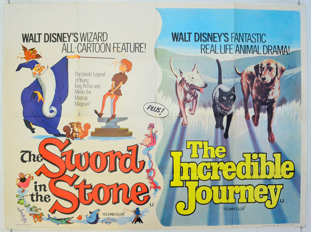 “The Sword In The Stone / The Incredible Journey ” (Double Bill) Original British Quad Poster - Film Poster - Movie Poster