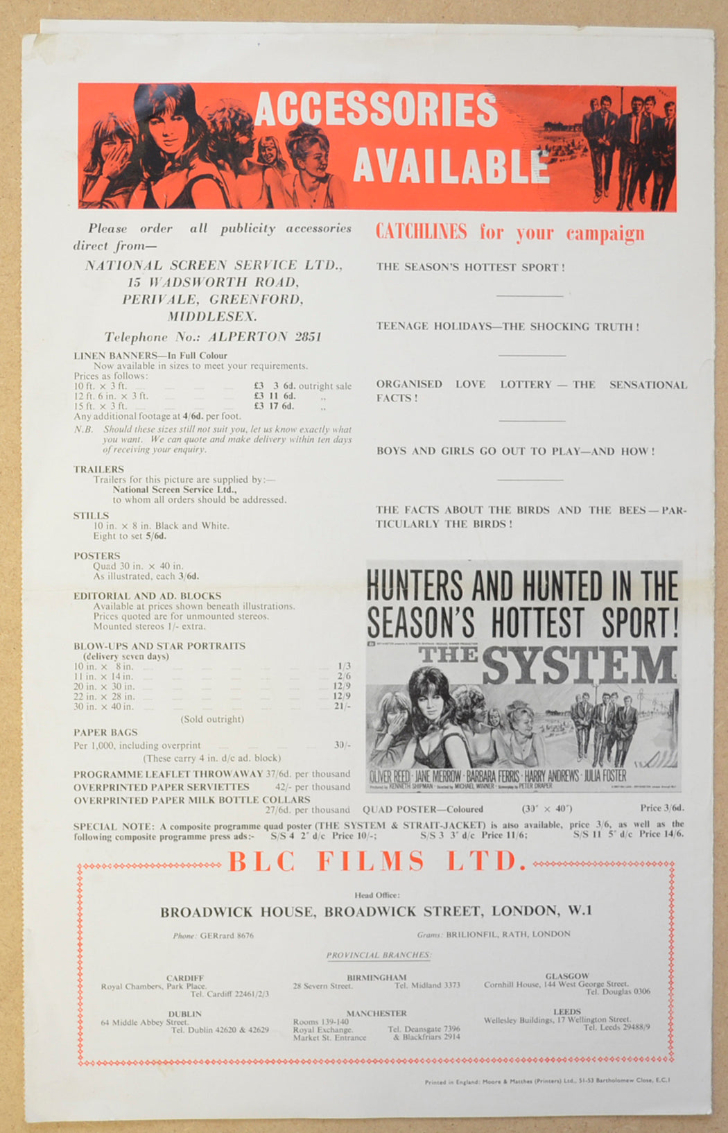 “The System” (a.k.a. The Girl-Getters) Original 6 Page Cinema Exhibitors Campaign Press Book (UK)