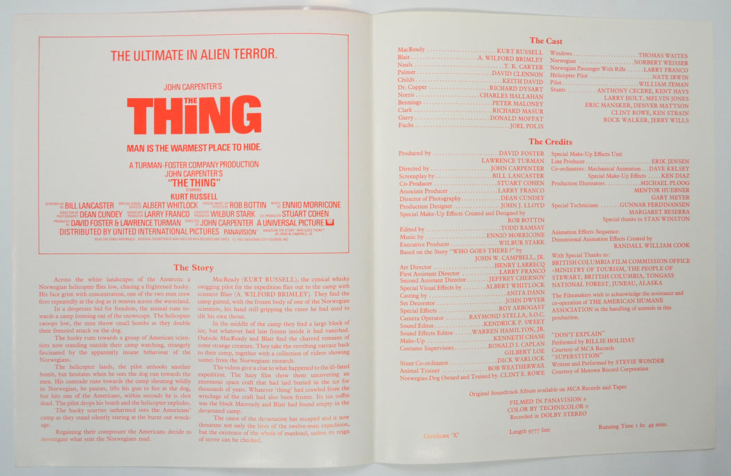 “The Thing” Original Cinema Exhibitors Press Synopsis / Credits Booklet (UK)