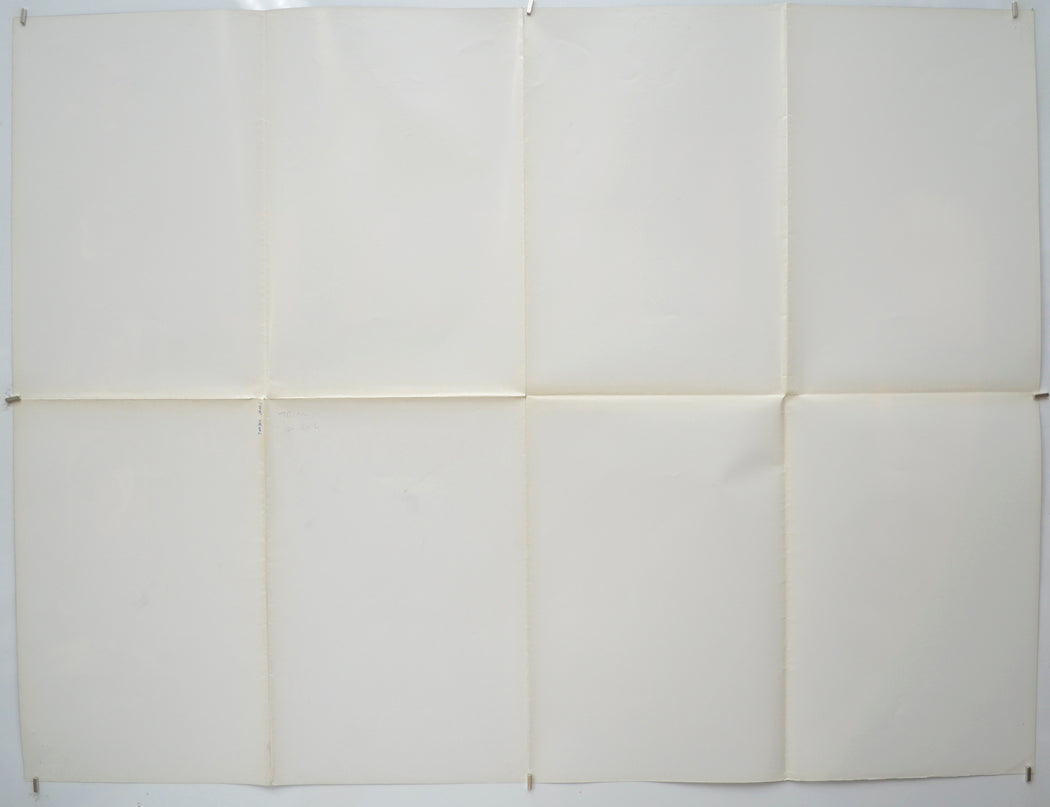 Extremely tiny piece torn from the tip of the top left corner, small diagonal crease across the top right corner, 4 cm diagonal crease across both bottom corners, two pinholes near every corner and the center of the top edge, very mild fold wear including a tiny separation at the center and right fold intersections plus stress marks on the fold lines, slight yellowing to the back of the fold lines and the title has been written on the back in blue pen (only noticeable on the front if the poster is held up to the light / backlit), otherwise very good.