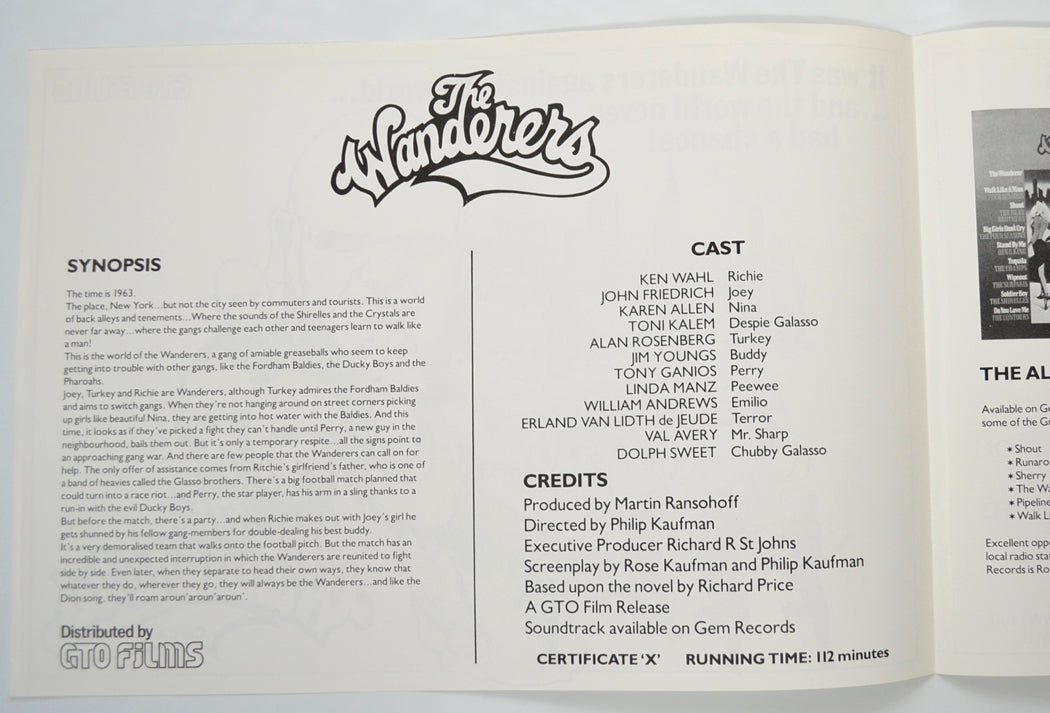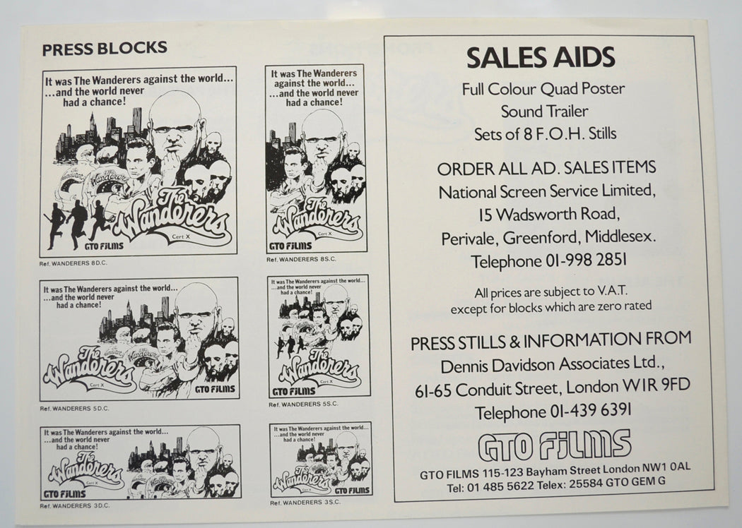 “The Wanderers” Original 4 Page Cinema Exhibitors Campaign Pressbook (UK) + Synopsis Sheet