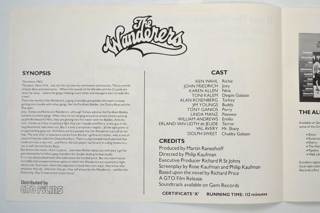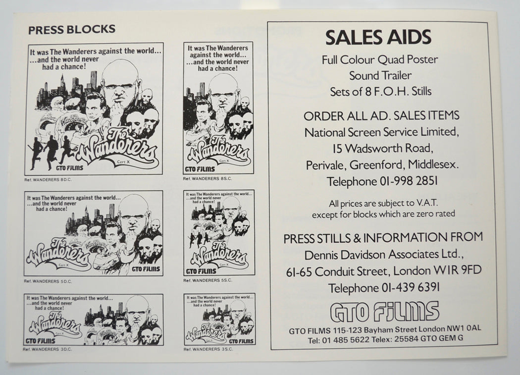 “The Wanderers” Original 4 Page Cinema Exhibitors Campaign Pressbook (UK) + Synopsis Sheet