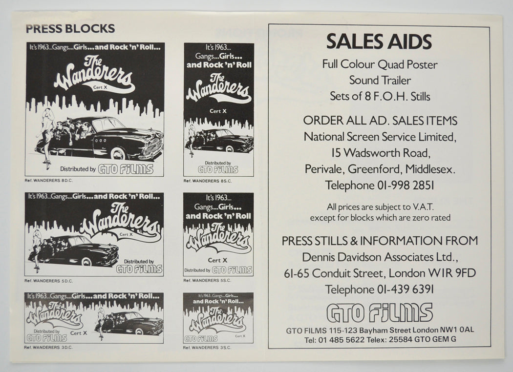 “The Wanderers” (Version 2) Original 4 Page Cinema Exhibitors Campaign Pressbook (UK)