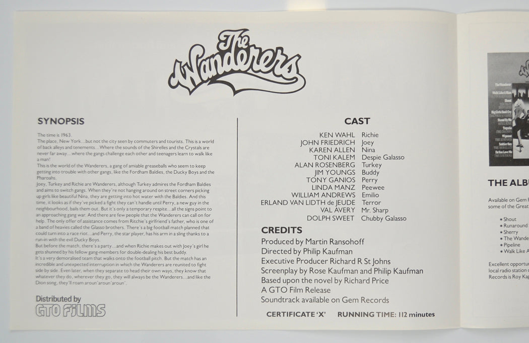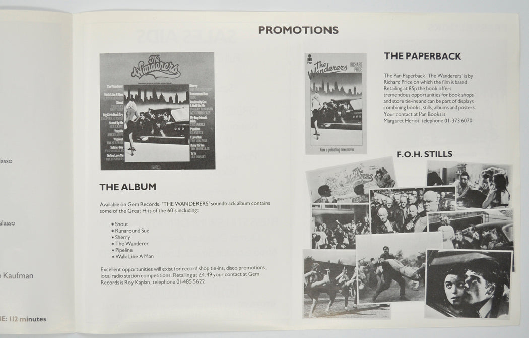 “The Wanderers” (Version 2) Original 4 Page Cinema Exhibitors Campaign Pressbook (UK)