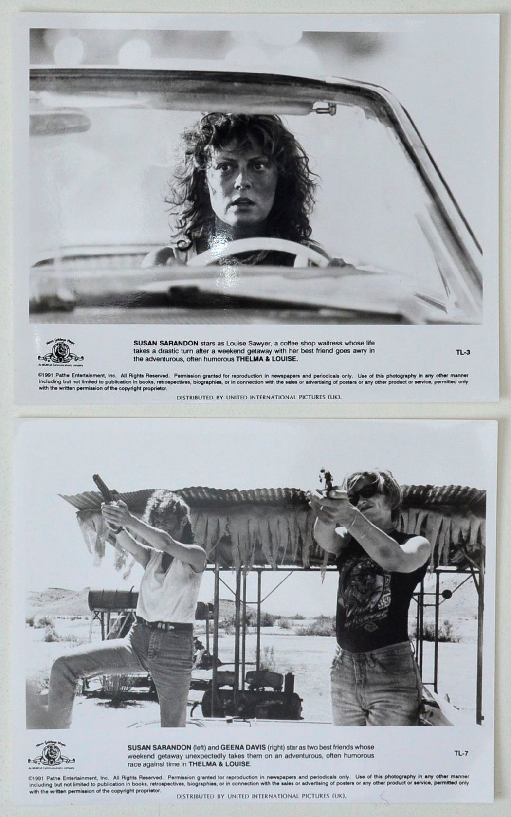 “Thelma And Louise” 2 Original Cinema Front Of House (FOH) Black And White Stills – Press Stills – Movie Stills