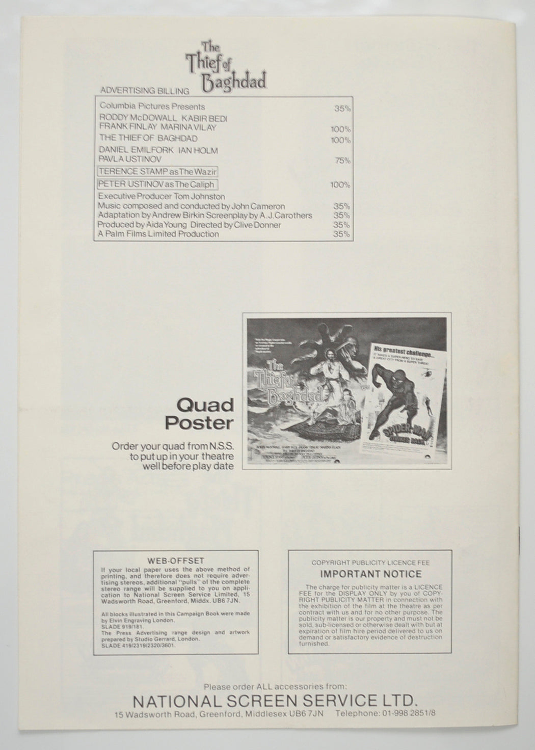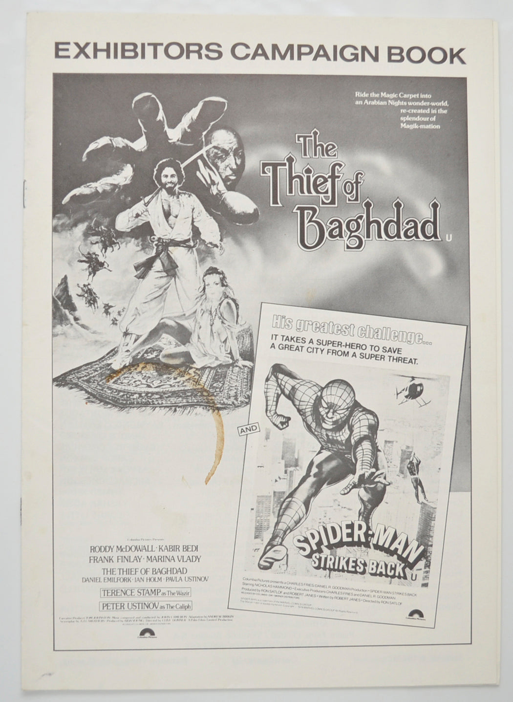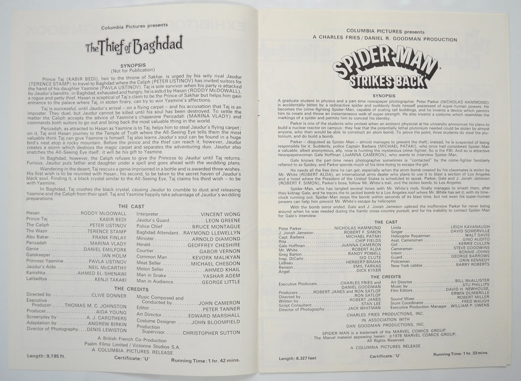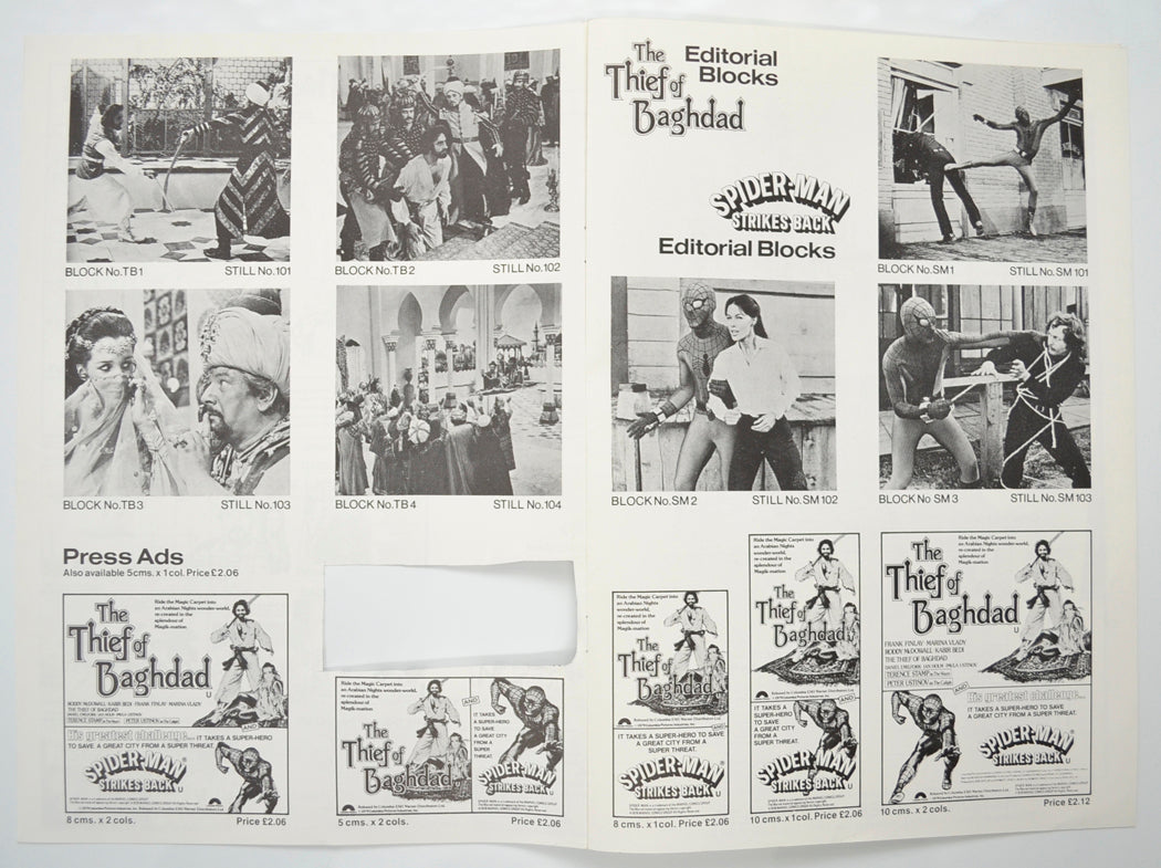 “Thief Of Baghdad / Spider-man Strikes Back” Original 8 Page Cinema Exhibitors Campaign Pressbook (UK) + Synopsis Sheets