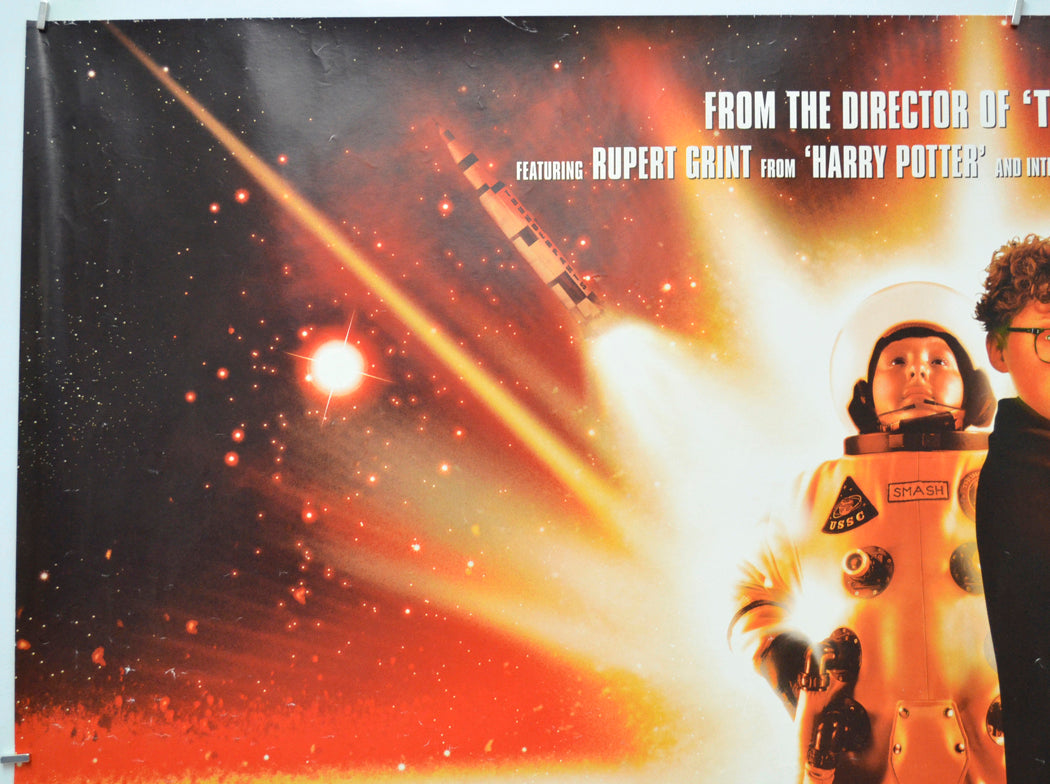 Blu-tac residue/grease near every corner, a couple of extremely tiny tears and moderate creasing along the top edge including numerous tiny white crease lines, 2 cm tear along with very mild creasing on the right edge, 2 cm diagonal tear along with approximately 5 tiny tears and mild creasing on the bottom edge, 20 x 5 cm band of tiny white surface creases from the center of the left edge inwards, a few additional tiny white surface creases near the left edge, several small white surface creases in the first 3 inches (8 cm) of the right of the poster, seven 20 cm vertical creases evenly spaced across the bottom of the poster, several tiny white surface creases within Grint’s jacket, very faint indentations line near every edge due to being in a cinema frame at some point, pinhole near the top right corner, otherwise okay.
