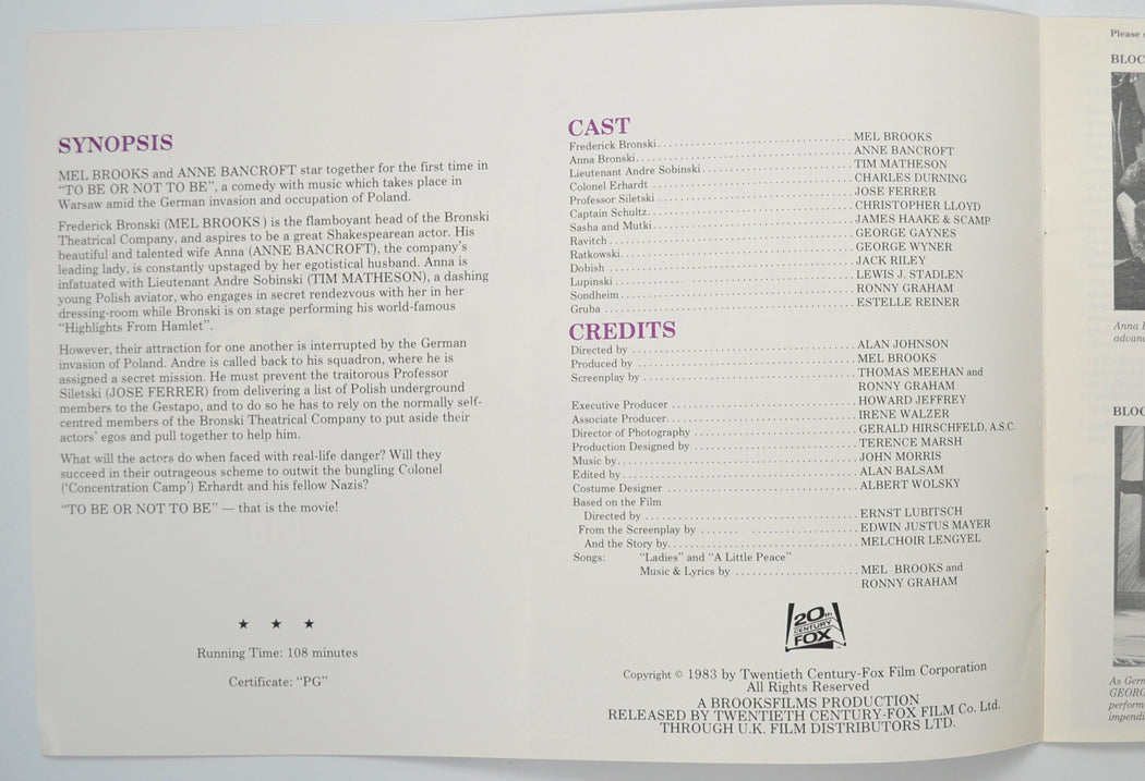 “To Be Or Not To Be” Original 8 Page Cinema Exhibitors Campaign Pressbook (UK)