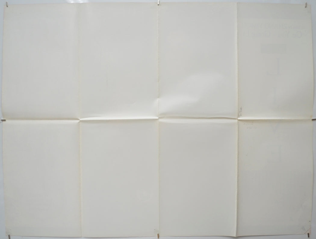 Light creasing around the corners including some small white stress marks, extremely mild fold wear including a tiny tear at the left fold intersection and stress marks on some the fold lines, extremely tiny Brown stain spot at the center of the left edge, a little blu-tac grease/residue on the back of every corner along with a small patch of surface paper loss due to blu-tac removal (only noticeable on the front if the poster is held up to the light / backlit), the title has been written on the back in black Biro (again only noticeable on front if the poster is held to light/backlit), otherwise very good.