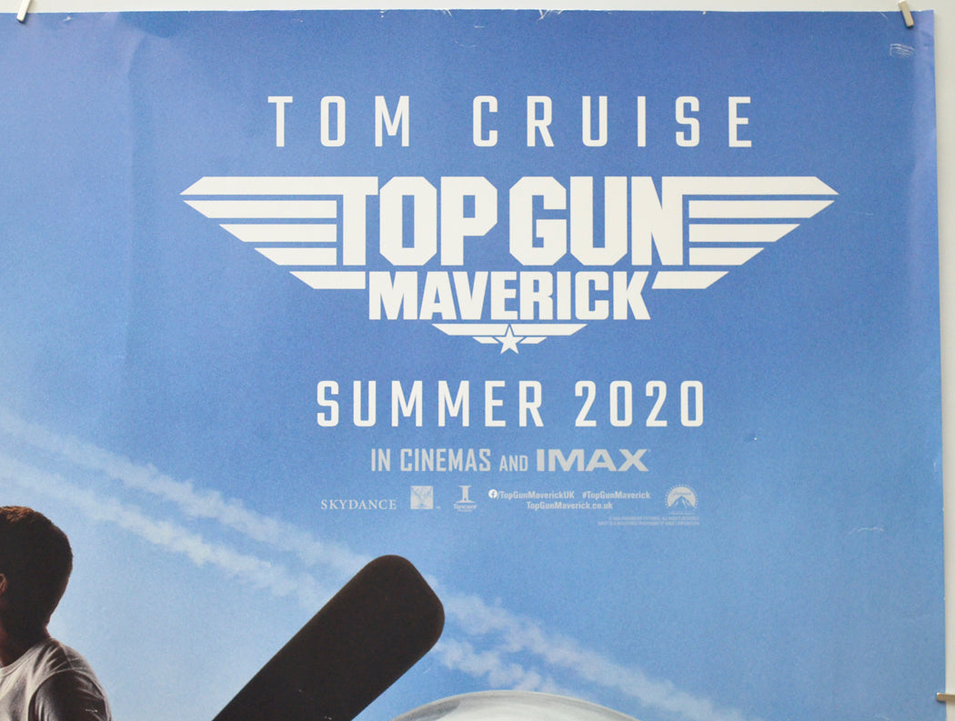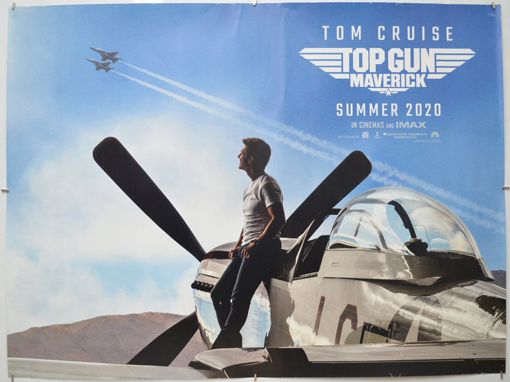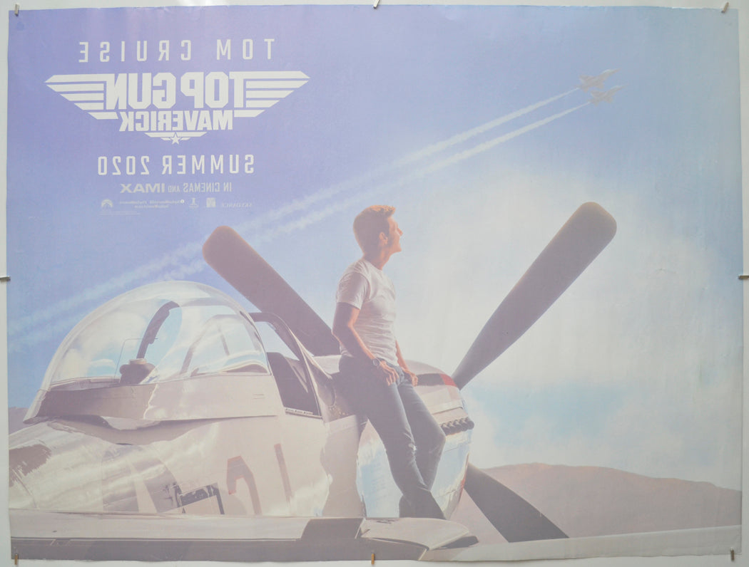1 cm tear along with approximately 6 tiny tears and mild creasing/edge wear on the top edge, a little blu-tac grease/residue near each corner, creasing around the top right corner including some white stress marks, mild creasing/edge wear on the bottom edge including an 18 cm slightly diagonal crease near the bottom left corner, a couple of small white surface creases just above the bottom edge, two small tears and a couple of tiny creases on the left edge, light surface creasing near the side edges including some white stress marks, small white crease patch within the left shin area, pinhole near the bottom right corner, some very light vertical roll waves from top to bottom throughout the poster due to being rolled in a large bundle (these should dropout), two tiny dark specks with a little surrounding grease staining? To the left of Cruise’s stomach, two small white surface creases within the top right propeller blade, light 20 cm vertical crease from the top edge down (just right of center), tiny grease spot just right of the 2020 date, otherwise okay.