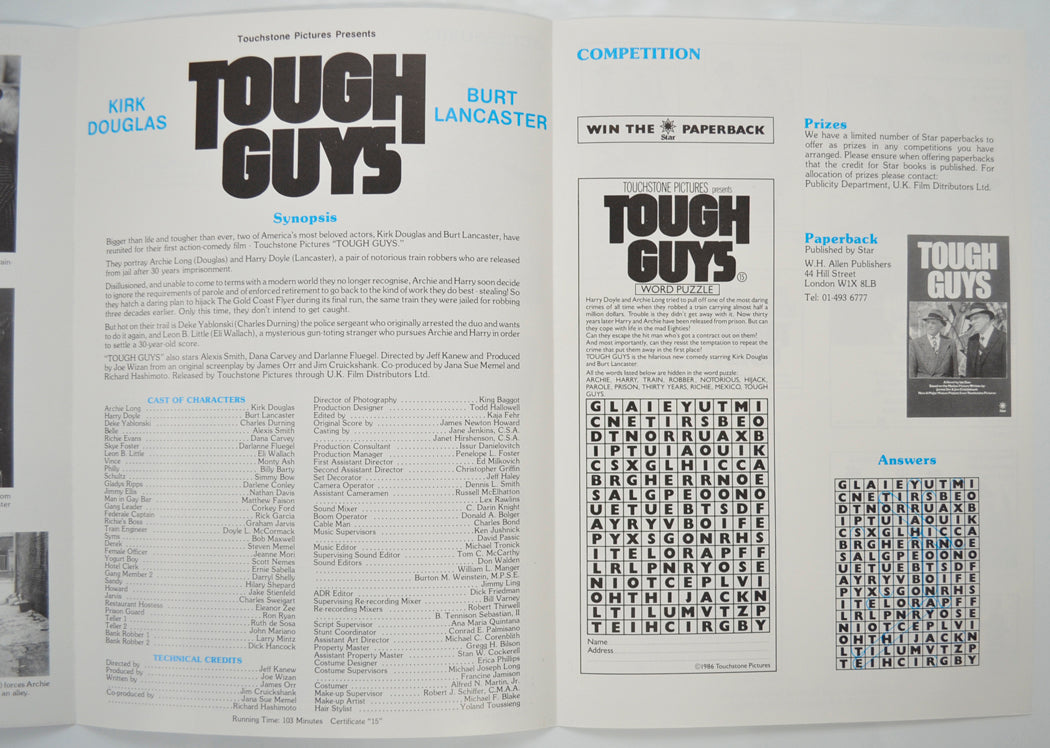 “Tough Guys” Original 6 Page Cinema Exhibitors Campaign Pressbook (UK) + Synopsis Sheet