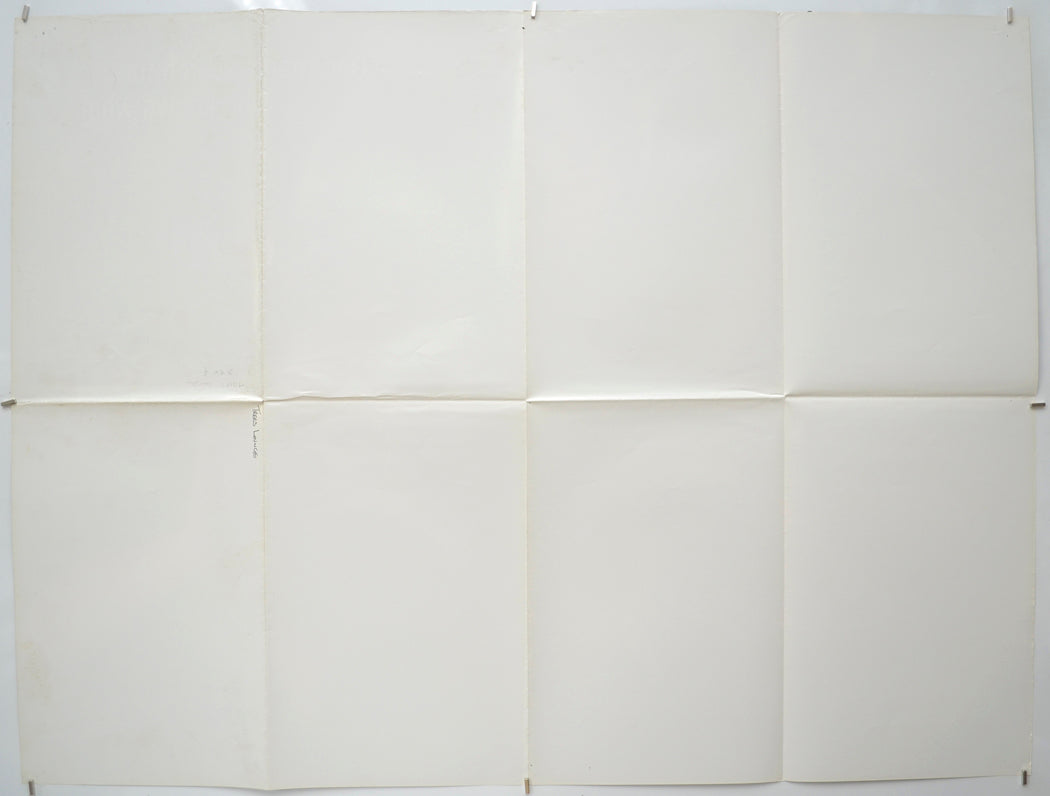 Mild edge wear on the top edge including approximately 7 small spots of print loss on the tip of the edge (mostly around the top of the vertical fold lines and the right corner), tiny tear at the top of the left vertical fold line, small patch of print loss at the bottom center, extremely mild edge wear on the left edge including a tiny spot of print loss at the center of the edge, 1 to 3 pinholes near every corner and the center of every edge, very mild fold wear (stress marks on the fold lines), title written on the back in biro (only noticeable on the front if the poster is held up to the light / backlit), otherwise good.