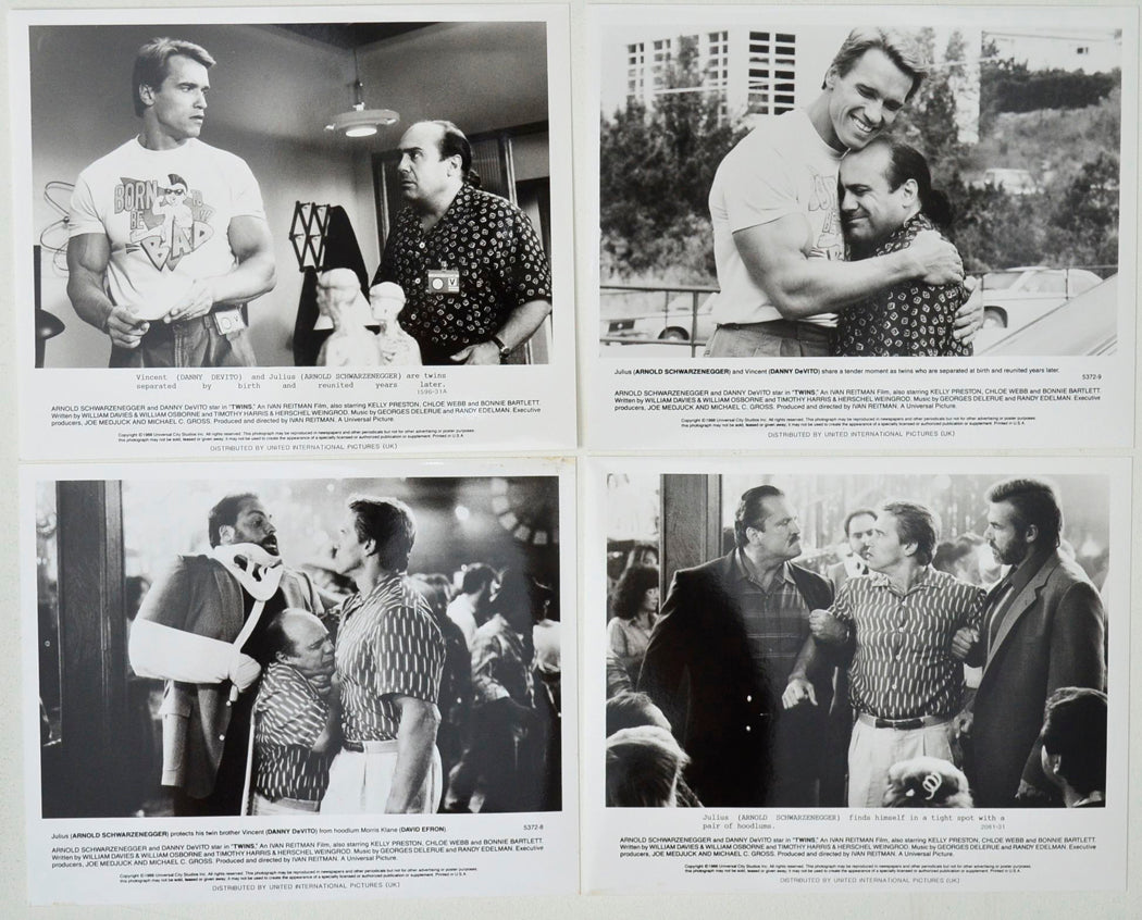 “Twins” 4 Original Cinema Front Of House (FOH) Black And White Stills – Press Stills – Movie Stills
