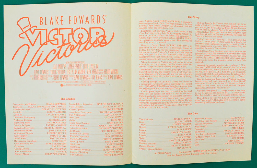 “Victor Victoria” Original Cinema Exhibitors Synopsis / Credits Booklet + Accessories Sheet