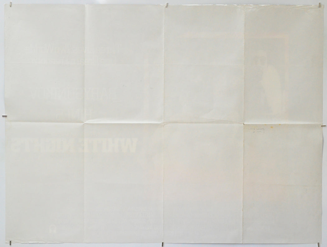 10 cm diagonal crease and a 7 cm crease across the top left corner, approximately 8 tiny tears and moderate/heavy creasing on the left of the top edge, tiny crease across the tip of the top right corner, extremely mild edge wear on the right edge, small tear and moderate creasing on the bottom edge (right), very mild fold wear including a tiny separation at the left fold intersection on the center horizontal fold line and a crease from the same intersection up into Baryshnikov’s neck plus light stress marks on the other fold lines (note there are three horizontal and three vertical folds), blu-tac grease on the back of the top corners and a few faint Brown spots of damp (foxing) on the back of the left of the poster (only noticeable on the front if the poster is held up to the light / backlit), otherwise good.Double Sided :