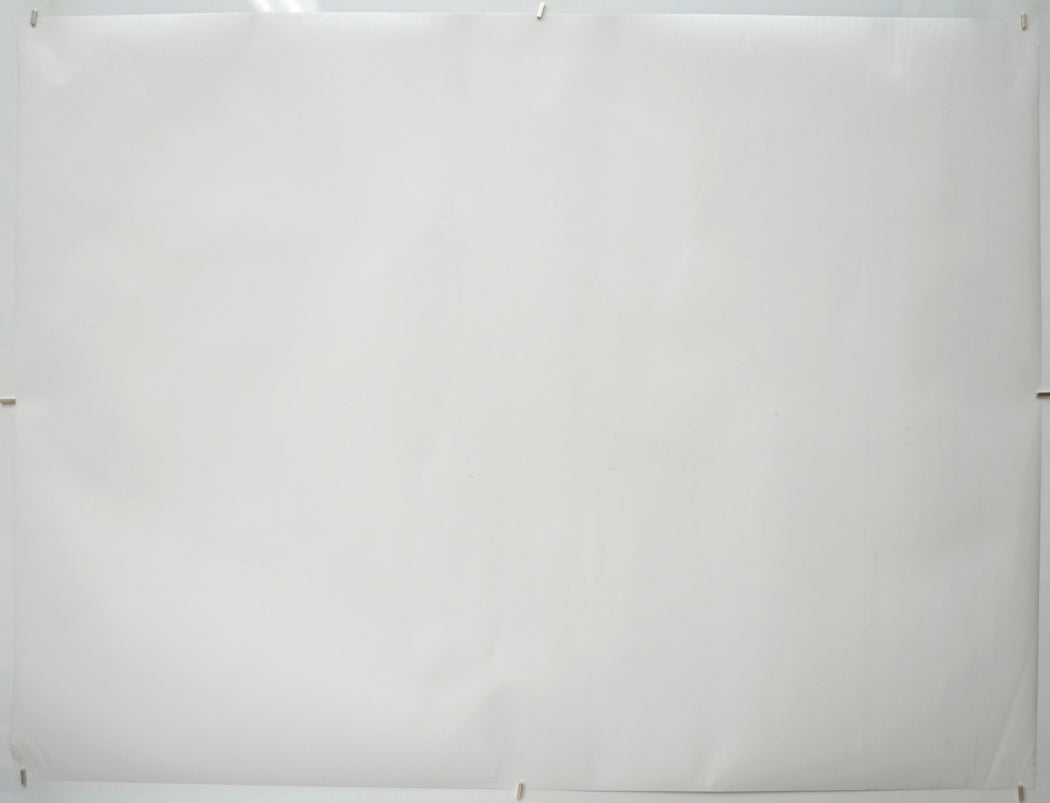 Pinhole near every corner, 1 cm tear at the center of the left edge and two tiny tears with surrounding creasing near the top of the edge, a couple of tiny spots of edge wear on the top edge, four additional tiny pinholes just above the bottom edge (near left corner), 17 cm diagonal crease across the bottom left corner, a couple of small light surface waves around the bottom right corner, very slight crimping to the top and bottom edges due to being in a cinema frame at some point, very faint 10 cm vertical crease and a smaller crease from the top edge downwards (left), some very light surface creasing around the right edge including a couple white stress marks to the right of the title, tiny white crease within the moon just above the right shoulder, otherwise very good.