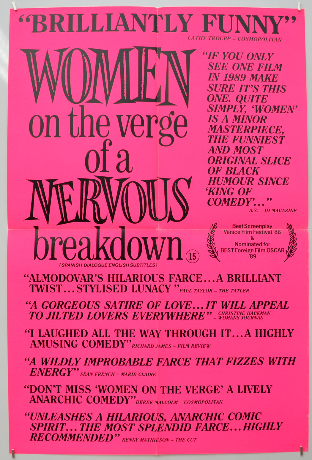 “Women On The Verge Of A Nervous Breakdown” (a.k.a. Mujeres Al Borde De Un Ataque De Nervios) Original Double Crown Poster - Film Poster - Movie Poster