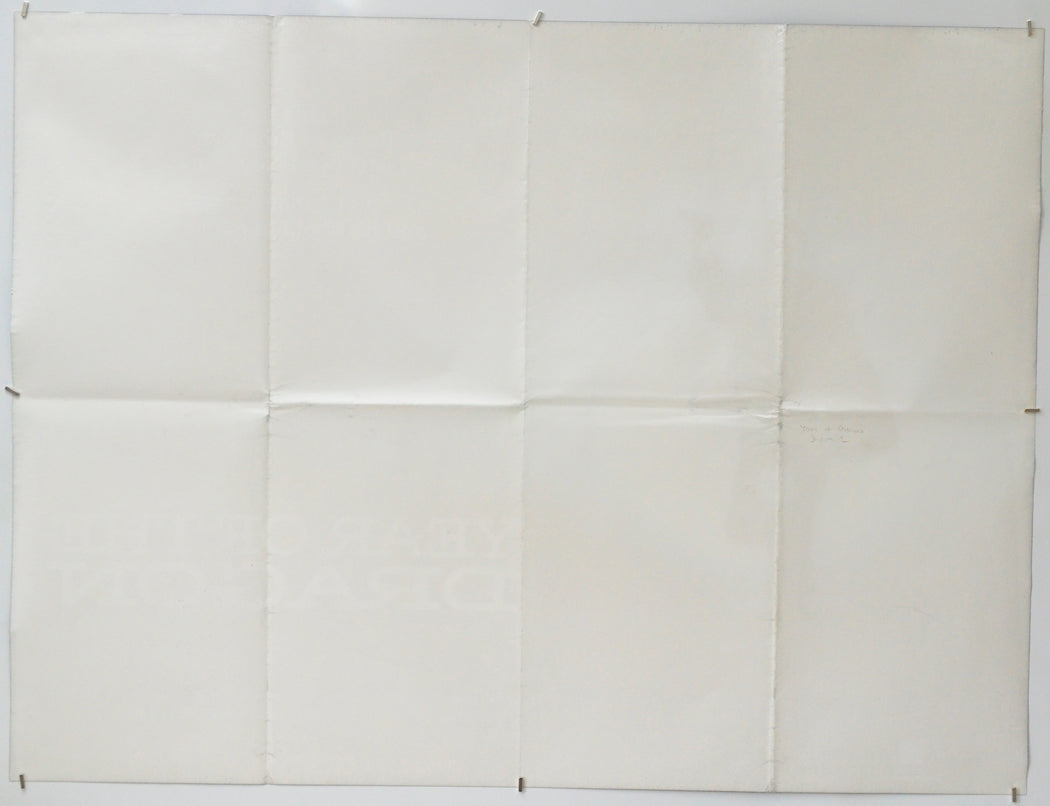 Extremely mild creasing on the tip of both side edges, faint fingermarks on the left of the bottom of the poster and a couple near the corners, light creasing around some of the fold intersections, a little dark print has transferred onto the left of the center horizontal fold (within the white background area), light 2 cm vertical crease near the top of the left edge, otherwise excellent, probably never displayed.Double Sided :