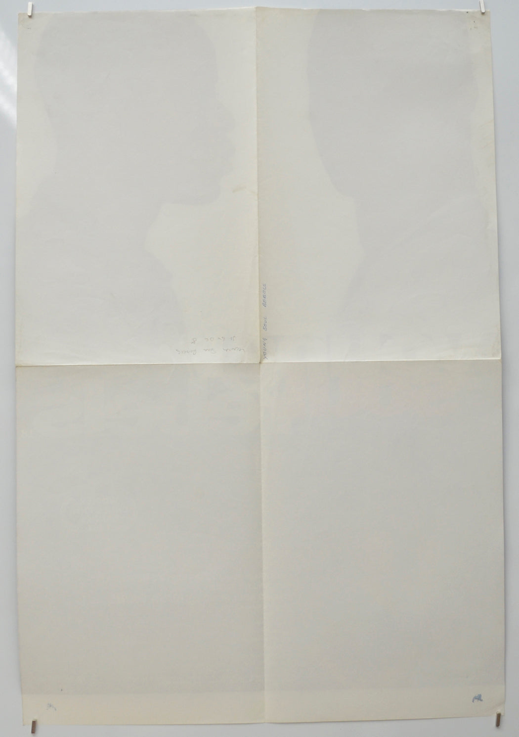Extremely mild creasing to the corners, a little purplish print has transferred into the white background areas around the top of the side edges and also onto and around the top of the center vertical fold line (due to the surfaces touching whilst stored folded for many years), the title has been written on the back in Biro and the pressure from the pen has lightly embossed the surface in three places on the front and a little purplish print has transferred onto this (in the white background area just above the NG in YOUNG) more noticeable if the poster is held to light/backlit, several tiny faint water specks in the purple background near the bottom half of the left edge, pinhole near every corner, blu-tac grease/residue on the back of every corner (this is lightly visible on the front… More noticeable if held to light/backlit), otherwise good.
